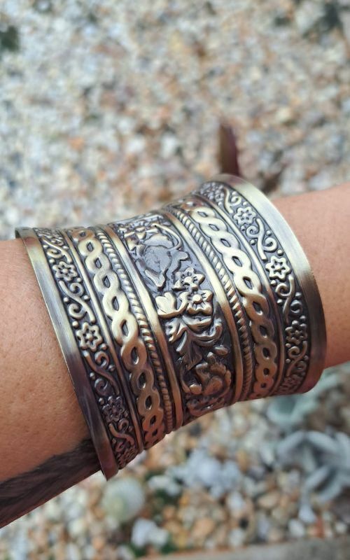 Descubra o charme atemporal do nosso Bracelete de Metal Largo! Com um design vintage em uma elegante cor bronze antigo, este acessório é perfeito para quem deseja expressar personalidade e estilo único.