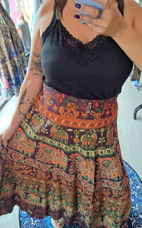 Autêntica, leve e cheia de charme: a Saia Envelope Indiana é um clássico do estilo boho, perfeita para compor looks fluidos, estilosos e cheios de personalidade.